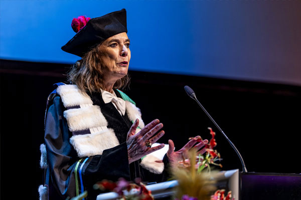 Als internationaal toonaangevend wetenschapper, auteur en bestuurder op het gebied van duurzame voedselvoorziening en mondiale ontwikkeling gaf Louise Fresco een helder beeld van onze persoonlijke verantwoordelijkheden: 'als we willen dat alles hetzelfde blijft, moet alles veranderen.' Fresco: 'We leven in roerige tijden en we gaan door momenten van grote verandering. Verandering hoort erbij, en dat is niet alleen negatief maar vooral positief en kansrijk. Het klimaat is als thema weggezakt in de aandacht ook al bestaat er geen twijfel meer over de toename van CO2. We zouden het gaan oplossen maar we spreken alleen te weinig over hoe.' Wat kan de Open Universiteit hierin betekenen? 'Studenten leren kritisch te zijn, stel verstandige vragen, ga meningen toetsen aan feiten en streef in deze tijd naar duurzaamheid want dat is het belangrijkste.'
