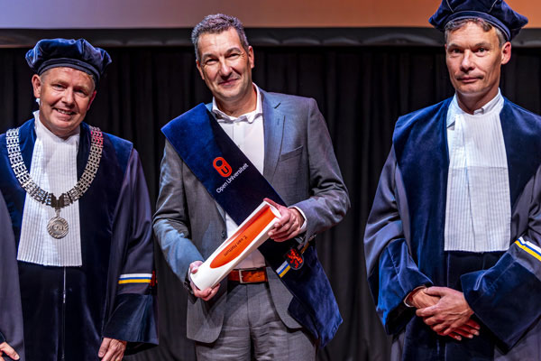 Dit jaar is het eredoctoraat uitgereikt aan Tim van Hattum, wetenschapper Environmental Science en hoofd van het Klimaatprogramma bij Wageningen University & Research. Met meer dan 25 jaar ervaring in het aanpakken van klimaat- en watergerelateerde vraagstukken in Nederland en internationaal legt hij uit wat de kansen en oplossingen voor de lange termijn zijn. 'Als er een land is dat veel kennis bezit over hoe je om moet gaan met water dan is het Nederland wel. Samen met de natuur en specifiek met water moet je samenwerken in plaats van maatregelen er tegen te nemen.' Het klimaat moet weer terug op de politieke agenda. 'De natuur is onze grootste bondgenoot in de strijd voor een oplossing, het landschap moet gaan fungeren als een grote spons. Groene en gezonde steden met ruimte voor water, dat worden steden die tegen een stootje kunnen!'