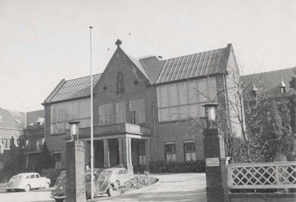 Hoofdingang van het St. Josephziekenhuis aan de Putgraaf, na de oorlog.