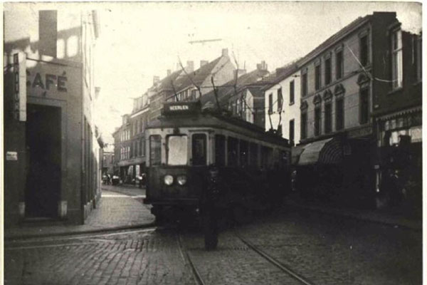 Tram op de hoek Akerstraat-Emmaplein 1949. Fotocollectie Rijckheyt 26416