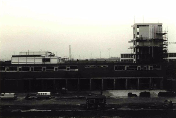 De bouw van de brandweerkazerne aan de Laan 1813, thans Burg. Gijzelslaan in 1965.
