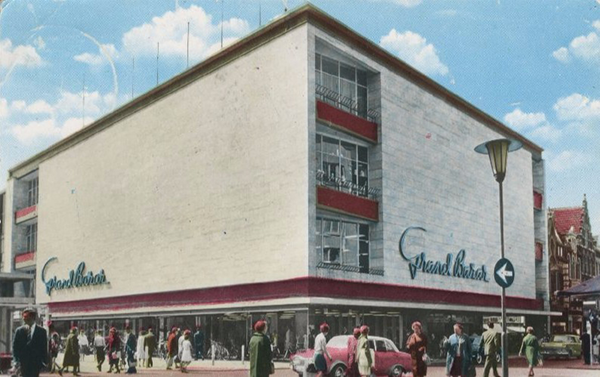 De Grand Bazar op de hoek van de Saroleastraat en de Promenade, 1965.