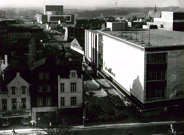 Tussen 1960 en 1970 verandert voor de derde keer in een halve eeuw het aanzien van het centrum. Voor de aanleg van een hypermoderne, autovrije Promenade met glanzende warenhuizen is in 1960 al een rij historische panden afgebroken. Het zijn de laatste daden van burgemeester Van Grunsven die in 1961 met pensioen gaat. Hij zal de geschiedenis ingaan als de man die het moderne Heerlen bouwde. Als eerbetoon wordt het tochtige plein voor de schouwburg, twee voetbalvelden groot, naar hem genoemd.