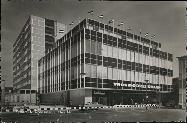 Vroom en Dreesmann met daarachter het Hotel Europe in 1958.