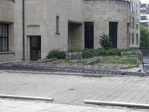 De resten van het arbeidsbureau naast het gemeentehuis.