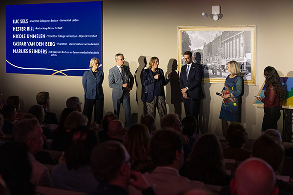 De opening was een feestelijke middag vol ontmoeting tussen genodigden, dans, muziek en mooie inhoudelijke bijdragen. Studenten, onderzoekers, gasten en bestuurders lieten zien hoe we (gaan) samenwerken aan maatschappelijke vraagstukken in Den Haag én ver daarbuiten. Caspar van den Berg van UNL ziet de campus als symbool voor de beweging die de universiteiten van Nederland hebben ingezet. 'Weg van afzonderlijke instellingen die elkaar beconcurreren. Veel meer naar partners die samenwerken en oplossingen vinden voor maatschappelijke problemen.' Onze hoogleraar Reijer Passchier van de Rechtenfaculteit maakte indruk met een vlammend betoog over de noodzaak van kennisdeling met beleidsmakers over hoe overheidsbeslissingen over technologie van invloed zijn op onze rechtsstaat en democratie.