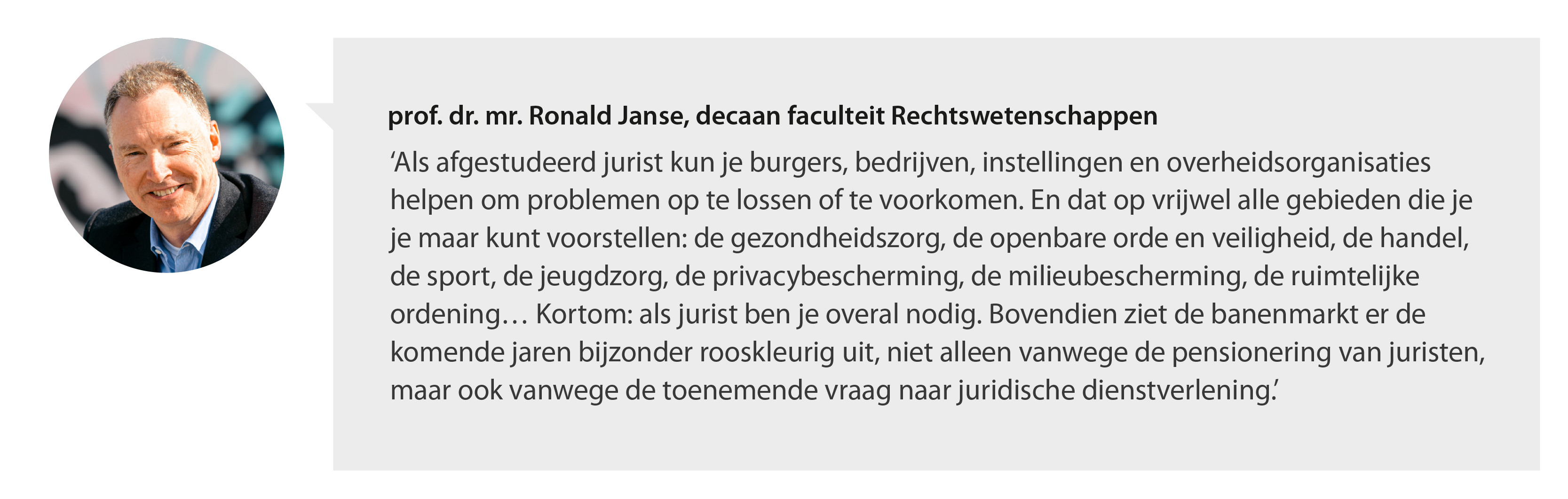 Er is een grote vraag naar professionals met specialistische kennis. In de master Rechtsgeleerdheid kun je je specialiseren in een van de vier afstudeerrichtingen: